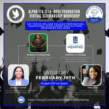 The Alpha Eta Zeta – DOVE Foundation, Inc., is the outreach arm of Alpha Eta Zeta Chapter of Zeta Phi Beta Sorority, Inc.; created in 2008, to enhance the general welfare and improve the quality of life of underserved populations in the community. The establishment of the Alpha Eta Zeta -DOVE Foundation, Inc. further strengthens our commitment to serve Memphis and the surrounding area. It provides the needed vehicle to partner with corporations for a greater impact to improve the community. The foundation is a not-for-profit 501(c)3 organization that is a wholly separate and distinct organization from Alpha Eta Zeta Chapter. It receives tax-deductible donations to the full extent of IRS regulations.